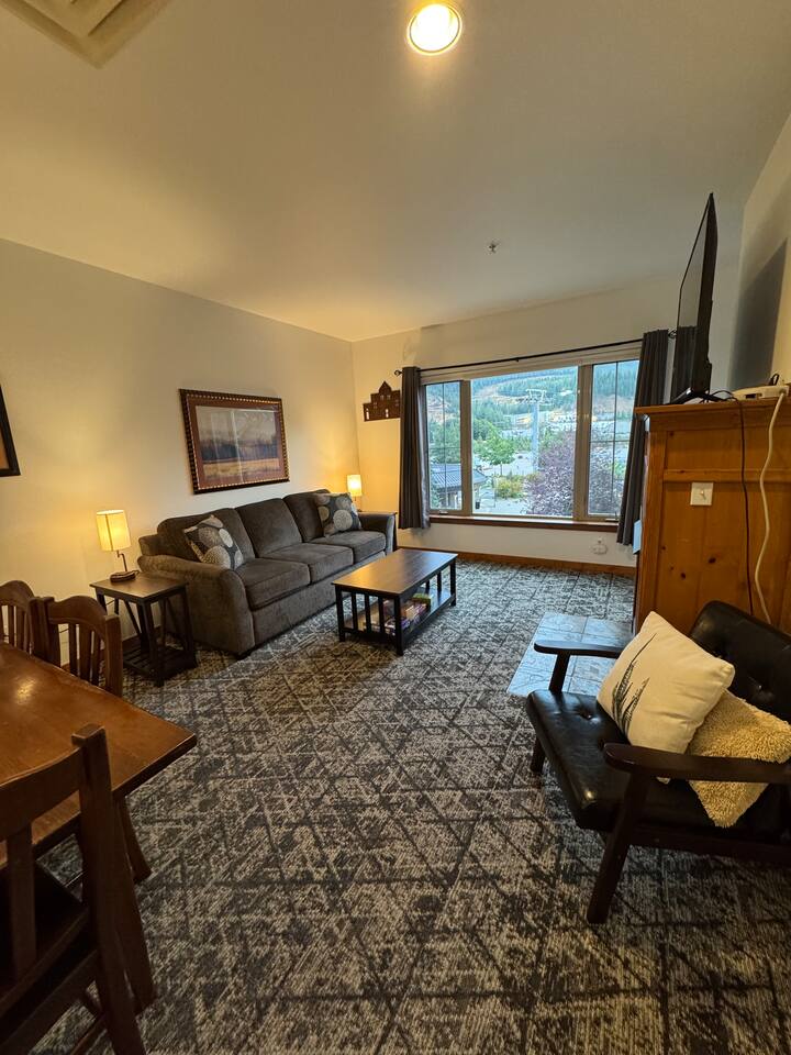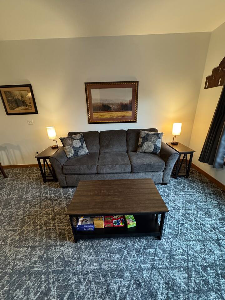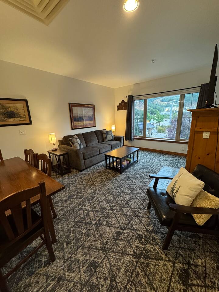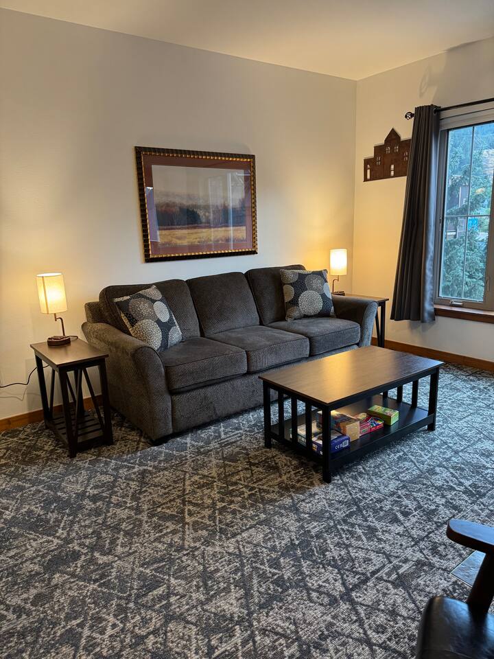 This condo offers a king size bedroom and a pull-out sofa sleeper featuring a gel memory foam mattress, a full bathroom, full kitchen, stacked washer/dryer, dining room table that seats 6 and counter top seating, and patio. With recent updates such as new paint/carpet throughout, new furnishings, and blackout curtains this condo will make you feel at home. There are areas to store your bikes and your skis for you to enjoy all that Silver Mountain Resort has to offer. Permit 19-09