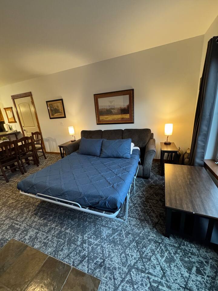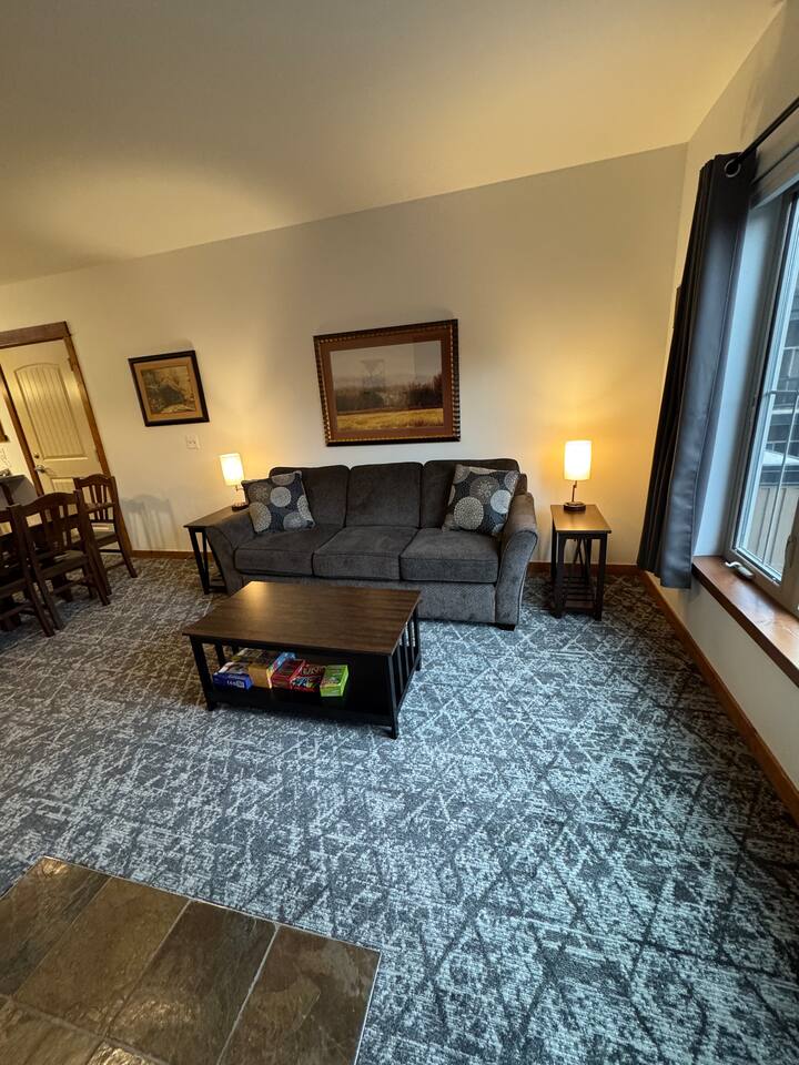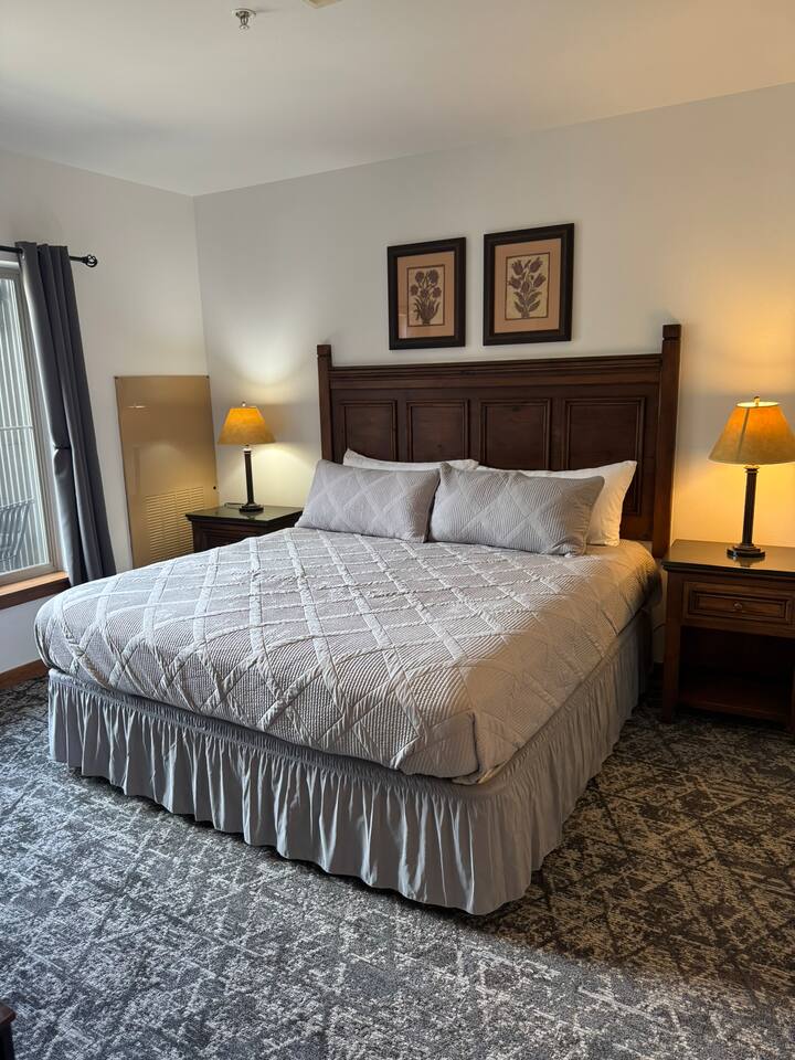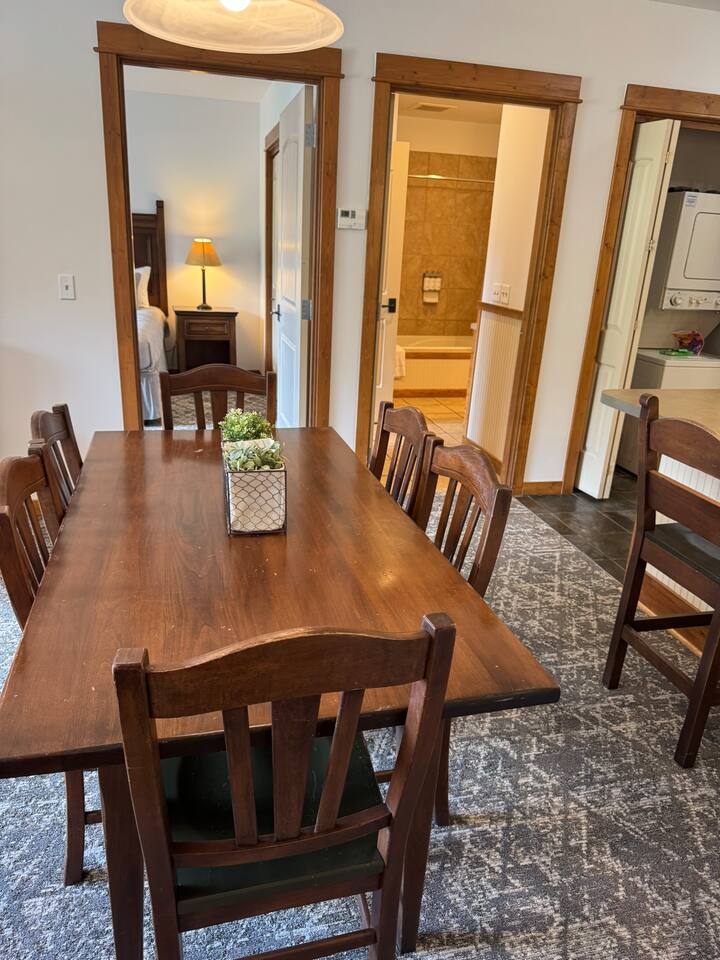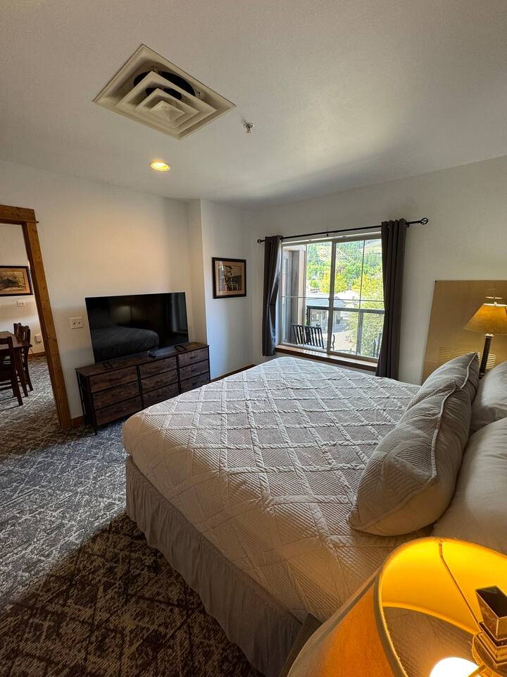 This condo offers a king size bedroom and a pull-out sofa sleeper featuring a gel memory foam mattress, a full bathroom, full kitchen, stacked washer/dryer, dining room table that seats 6 and counter top seating, and patio. With recent updates such as new paint/carpet throughout, new furnishings, and blackout curtains this condo will make you feel at home. There are areas to store your bikes and your skis for you to enjoy all that Silver Mountain Resort has to offer. Permit 19-09